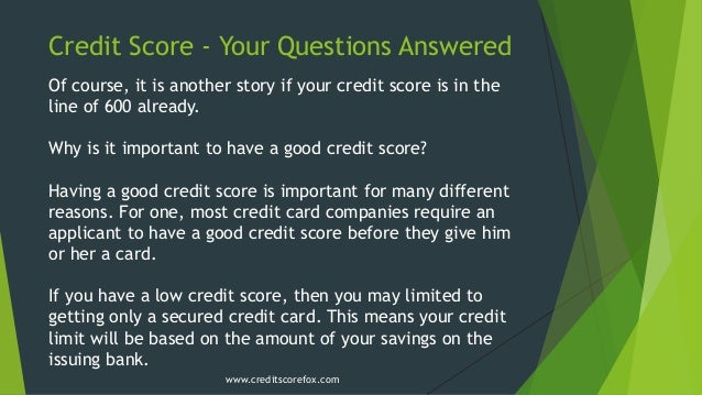 Why is a good credit score so important? A. A good credit score creates opportunities for access to credit as well as helping you access credit more rapidly and with better terms. A good credit score also gives you access to a larger amount of credit, assuming you can ... Read More
